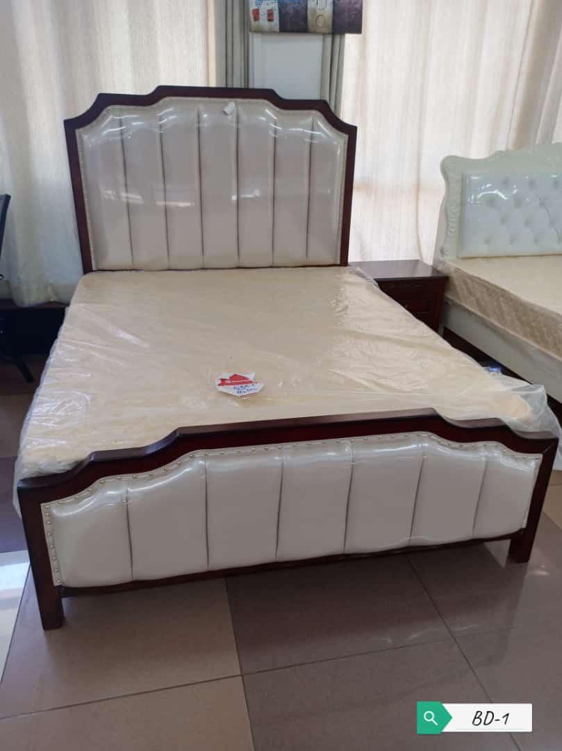 Imported wooden bed with padded headrest